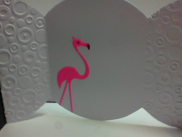 I love the way you can take the same items and yet make two very different cards with them. The flamingos were die cut out of neon hot pink vellum using a die from the Crafter's Companion Verity Rose 'Sunbeam' collection. While the vellum was still in the die, I placed it on a piece of funky foam with the die face down and embossed all the open areas with an embossing tool, I flipped the die over and added some detail to the eye and the beak using an alcohol marker. I die cut a simple heart shape out of the pink vellum scraps. For the instructions on how to make a circle gatefold card, please click on this link